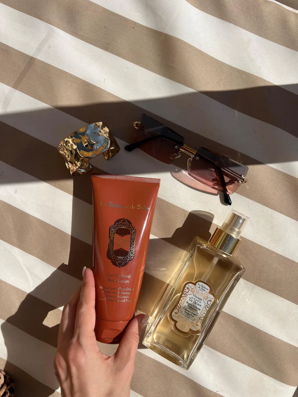 Все необходимое для поддержания кожи в идеальном состоянии содержится в молочке для тела La Sultane de Saba. Идеальное средство для ежедневного применения, состоящее из масла сладкого миндаля, арганы и масла карите, обладает легкой, но насыщенной текстурой, быстро впитывается, не оставляя следов. Молочко для тела обладает укрепляющими свойствами, обеспечивает тотальное увлажнение, которое сохраняется 24 часа, придавая ощущения комфорта и обволакивая изысканными ароматами. Кожа приобретает здоровый вид, становится шелковистой и более упругой.